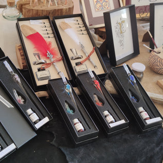 Hiéroglyphes est une boutique en ligne originale. Nous vous proposons une large gamme de matériel de Calligraphie et d'Enluminure : encres naturelles et artisanales, porte-plumes, plumes métalliques et plumes de verre, sceaux, cire à cacheter, encriers, pigments, multiples papiers, grimoires, coffrets d'initiation à la Calligraphie et à l'Enluminure, coffrets-cadeaux...